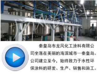 秦皇島市龍風(fēng)化工涂料有限公司坐落在美麗的海濱城市——秦皇島。公司的前身“秦皇島市海港區(qū)七彩絲光王環(huán)保涂料廠”,始建于2000年8月23日。十多年以來(lái),始終致力于水性涂料的研發(fā)、生產(chǎn)、銷售和施工。為了企業(yè)更好更快的發(fā)展,滿足涂料行業(yè)發(fā)展的需要,2010年3月26日正式成立“秦皇島市龍風(fēng)化工涂料有限公司”,同年在秦皇島市海港區(qū)東港鎮(zhèn)龍家營(yíng)村建造了秦皇島地區(qū)規(guī)模較大的涂料生產(chǎn)基地——龍風(fēng)涂料廠。目前該公司是中國(guó)建筑裝飾裝修材料協(xié)會(huì)會(huì)員單位和中國(guó)建筑裝飾裝修材料協(xié)會(huì)建筑涂料分會(huì)秦皇島辦事處,以及中國(guó)涂料工業(yè)協(xié)會(huì)會(huì)員單位。公司引進(jìn)了許多高效的生產(chǎn)設(shè)備和配套齊全的檢測(cè)實(shí)驗(yàn)設(shè)備,運(yùn)用科學(xué)的管理模式,研發(fā)了新型的技術(shù)配方,培養(yǎng)了一批涂料行業(yè)精英,2013年公司被評(píng)為“中國(guó)建筑涂料行業(yè)杰出新銳品牌”。